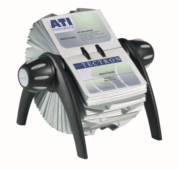 Otočný vizitkár v modernom dizajne Vďaka abecednému registra sa ľahko orientujete pri hľadaní správnej vizitky 200 obojstranných puzdier vo formáte 104 x 72 mm na 400 vizitiek (10,4 x 7,2 cm) Maximálna …