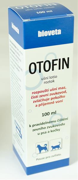 OTOFIN ušný lotio rozpúšťa ušný maz, čistí vonkajší zvukovod psa alebo mačky, zanecháva vláčnu pokožku a príjemnú vôňu. Jeho pravidelné používanie napomáha udržiavať uši čisté a zdravé. Svojím zložením zodpovedá súčasným požiadavkám na kompozíciu prípravkov určených na efektívne a bezpečné výplachy a čistenie uší psov a mačiek.