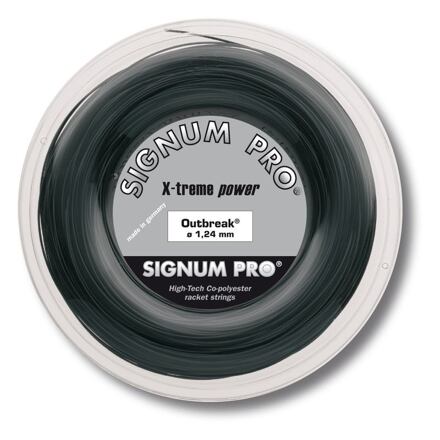 Tenisový výplet Signum Pro Outbreak je horúcou novinkou pre rok 2014. Tento model tenisového výpletu je vhodný ako pre profesionálnych hráčov, tak aj pre veľmi náročných amatérskych tenistov. Struna je tvorená 50% polyesterom a 50% co-polymérom. Vďaka použitému materiálu aj výrobnej technológii sú najväčšími výhodami pružnosť a cit.
