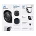 IP kamera-vnútorný a vonkajší Obrazový snímač 1/2.8'' CMOS Rozlíšenie 2K 3MP (2304 × 1296 px) Objektív 2.0±5%; Ohnisková vzdialenosť: 3.9mm±5% Nočné videnie IR LED (až 98 ft), plnofarebné nočné videnie Rozsah zobrazenia 360° horizontálne a 130° vertikálne Stupeň krytia IP65