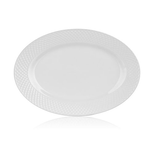 Oválny tanier Banquet Diamond Line v bielej farbe s ozdobným reliéfom Vyrobené z keramiky, rozmery 34,5 x 24,2 cm Možno použiť do mikrovlnnej rúry aj do umývačky riadu na bežné domáce použitie
