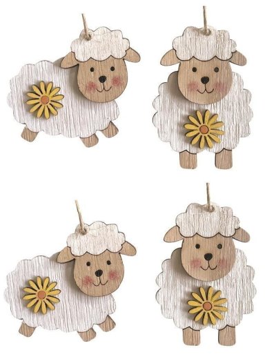 Ovečka na zavesenie drevená 5 cm 4ks