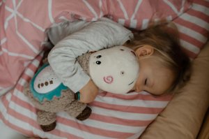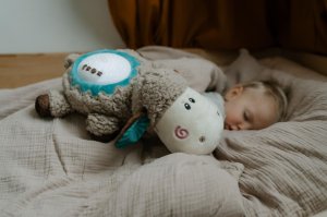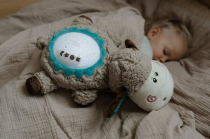 Mäkučká plyšová ovečka s projektorom je ideálny spoločník pre pokojné zaspávanie bábätiek aj batoliat. Po zapnutí začne jemne svietiť a premietať ukľudňujúce hviezdičky na strop, zatiaľ čo prehráva príjemné melódie alebo tlmené zvuky prírody. Hebký plyš v kombinácii s hladkým plastom je príjemný na dotyk a bezpečný pre najmenšie deti. Ovečka podporuje zaspávanie, upokojuje a vytvára príjemnú atmosféru v izbičke. Ideálna ako darček k narodeniu či na dobrú noc.