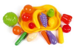 Plastový podnos/tácka s atrapami ovocia a zeleniny je výborným darčekom pre každú malú kuchárku. Veľký výber potravín umožní malej kuchárke uvariť viac lahodných pokrmov naraz a pohostiť tak svoje kamarátky či bábiky. Rozmery výrobku: 32 x 11 x 23 cm Vhodné pre deti od 3 rokov
