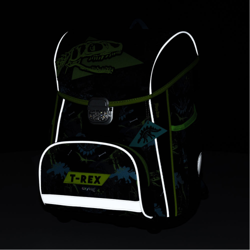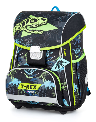 Školská súprava pre prváčika s motívom dinosaura T-rexe. Set obsahuje školský batoh Premium, vrecko na cvičky a nenaplnený jednoposchodový peračník. Aktovka: