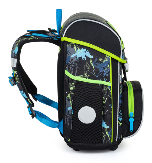 je anatomicky tvarovaná a zaisťuje tak správne usadenie na chrbte vystužený chrbát a vnútorná výstuha udržujú stály tvar batohu polstrovanie je z príjemného priedušného materiálu široké mäkčené popruhy sú navrhnuté tak, aby dokonale priľnuli a rovnomerne zaťažili ramená dieťaťa skladá sa z jednej priestrannej komory, kam sa pohodlne vojdú všetky školské pomôcky pre deti v 1. av 2. triede dno batohu je z pevného materiálu, chráni tým obsah pred prevrhnutím a vysypaním zapínania je na bezpečnostnú pracku predné vrecko je určený na desiatu nechýba rad reflexných prvkov, vďaka ktorým je aktovka viditeľnejšia