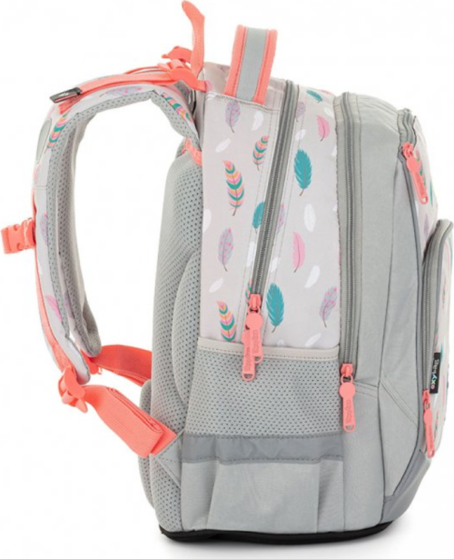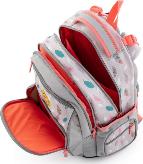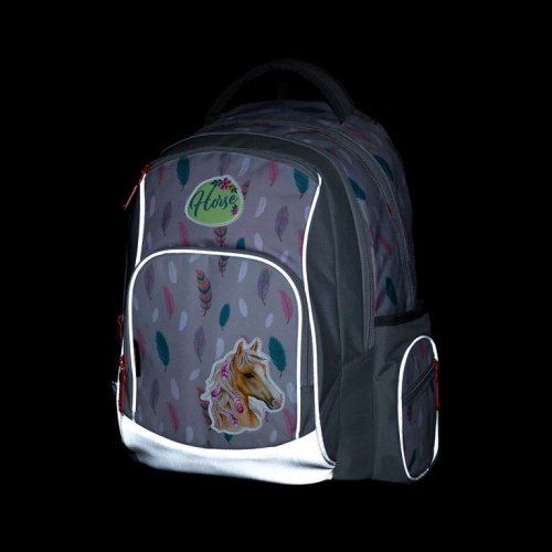 ľahký a dostatočne veľký anatomicky tvarovaný priedušný chrbát nastaviteľné ramenné popruhy dve vnútorné vrecká a mnohé ďalšie vrecká pevné dno zabraňuje ušpineniu zvonku i pretečeniu čohokoľvek, čo sa vyleje vo vnútri batohu množstvo vreciek reflexné prvky ideálne pre prvý stupeň 1. - 3. triedu pre deti s výškou od 125 cm