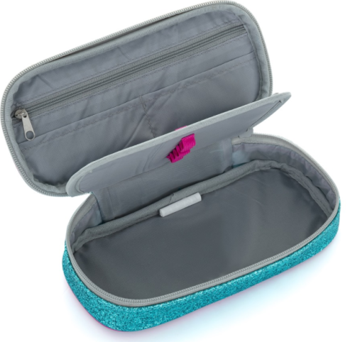 Puzdro na perá, ceruzky, pastelky, fixky a ostatné písacie potreby pre školákov na 1. a 2. stupni. Školské púzdro etue s motívom jednorožca s trblietkami. Puzdro je opatrené pevnými zipsami, vreckom na zips a klopou s pevnými pútkami po oboch stranách. Pod chlopňou je miesto na voľné uloženie písacích potrieb alebo iných drobností. Rozmery uzavretého puzdra sú 20,5 x 10 x 5 cm. Poznámka: Peračník neobsahuje písacie potreby.