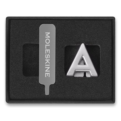 Balenie obsahuje:, * ozdobu=písmeno na personifikáciu zápisníka alebo diára, * kovovú skrutku na upevnenie ozdoby ku gumičke zápisníka alebo diára, * špeciálny skrutkovač, * návod na použitie (v anglickom jazyku), Vyrobené zo zliatiny zinku