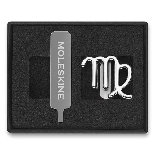 Balenie obsahuje:, * ozdobu = symbol zverokruhu na personifikáciu zápisníka alebo diára, * kovová skrutka na upevnenie ozdoby ku gumičke zápisníka alebo diára, * špeciálny skrutkovač, * návod na použitie (v anglickom jazyku), Vyrobené zo zliatiny zinku.