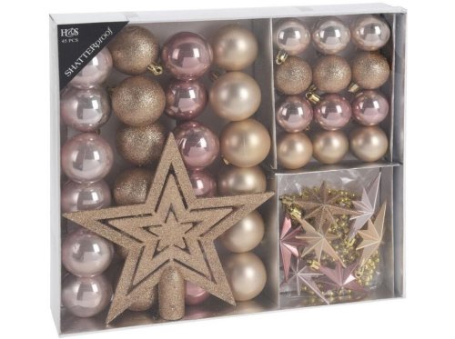 Vianočné ozdoby (guľa, špička, dekorácia), sada 45díl., strieborné, zlaté, hnedé. sada obsahuje: - hviezda 19 cm (1 ks) - hviezdičky mix 5 x 8 cm (7 ks) - guľa mix pr. 4 cm (12 ks) - guľa mix pr. 5 cm (24 …