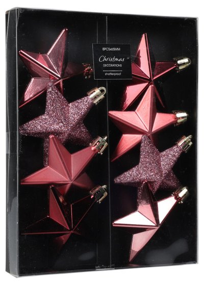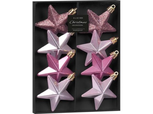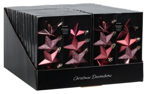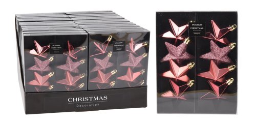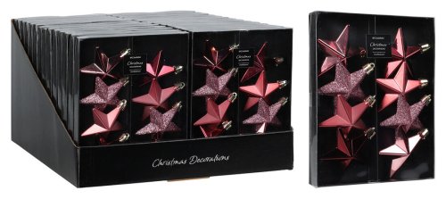Vianočná sada obsahuje závesné ružové ozdoby v tvare hviezdy. Tradičné ozdoby na skrášlenie Vášho domova vo vianočnom období.