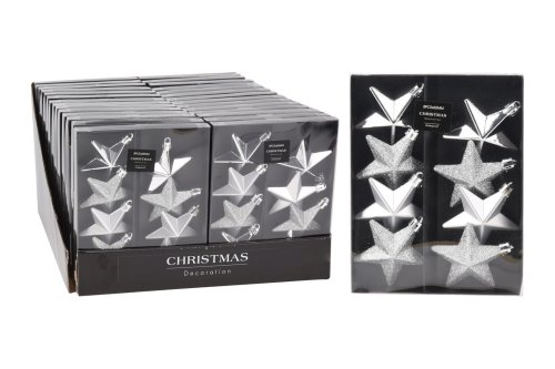 Vianočná sada obsahuje závesné strieborné ozdoby v tvare hviezdy. Tradičné ozdoby na skrášlenie Vášho domova vo vianočnom období.