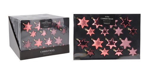 Ozdoba vianočná HVIEZDA (8 x 6 cm / 8 x 5 cm) RUŽ mix (16 ks).