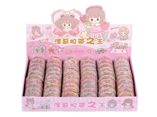 Transparentnú samolepiacu pásku s obrázkami využijete na zdobenie prianí, denníkov, darčekov, foto rámčekov, albumov, pozvánok, krabičiek a pod. Deťmi sú veľmi obľúbené na rýchlu úpravu školských zošitov. Obrázky sú zvýraznené drobnými metalickými detailmi. Pásky držia na všetkých hladkých materiáloch, ako je papier, plast, sklo, atď. Pásky majú rôzne detské motívy. Pásky v balení mix 60 ks sú zabalené v papierovej krabici. Vnútri má stojan, hodí sa na vystavenie do predajne, viď foto. Škatuľa má rozmery 15 x 23 x 3,5 cm.