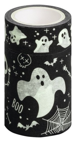 Páska lepiaca papierová obsahuje rolky v 2 veľkostiach (3 m × 15 mm, 3 m × 45 mm). Motívy so svetelným efektom v tme! Môžete s ňou ozdobiť rôzne výrobky pri tvorení - ketináče, vázy, svietniky, stojančeky. Dozdobenie rôznych denníkov, zápisníkov, pamätníkov... Na prednej strane krabičky sú zúbky na odtrhnutie lepenky.