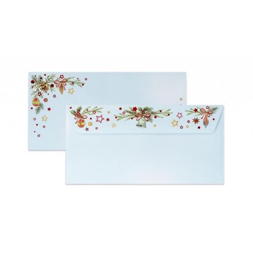 Ozdobné obálky formátu DL, elegantný variant pre vašu sezónnu korešpondenciu či prianie Vyrobené z papiera vyššej gramáže s vianočným dekorom Navlhčovacie lepidlo Formát: DL Rozmery: 110 x 220 mm Gramáž: 120 …