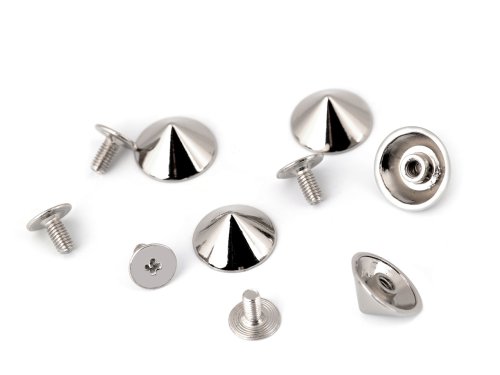 Skrutkovacie hroty skvele ozdobia každú kabelku, listovú kabelku, odevy, kožené bundy aj topánky. Skladajú sa z dvoch častí, ktoré do seba jednoducho zaskrutkujete. Môžete ich použiť aj ako nožičky na kabelky. Dĺžka po zaskrutkovaní oboch častí je 10,5 mm. Hrot je vhodný pre látky s hrúbkou 3 mm.
