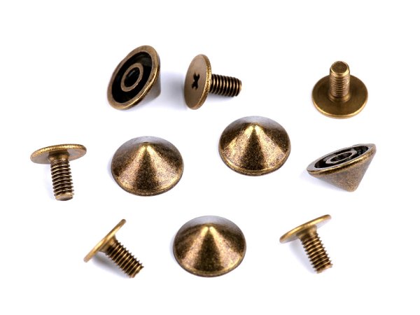 Skrutkovacie hroty budú ozdobou každej kabelky, listovej kabelky[, odevov, kožených búnd] i topánok. Skladajú sa z dvoch častí, ktoré do seba jednoducho zaskrutkujete. Môžete ich použiť aj ako nožičky na kabelky. Dĺžka po zaskrutkovaní oboch častí je 9 mm. Hrot je vhodný pre látky s hrúbkou 2 mm.