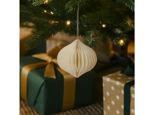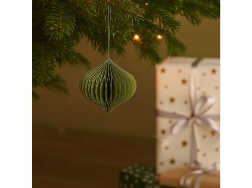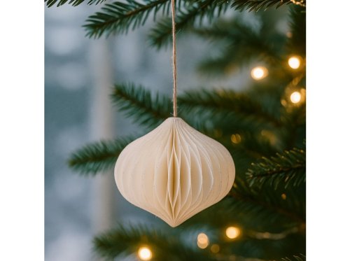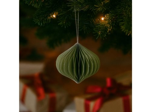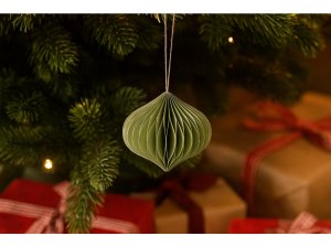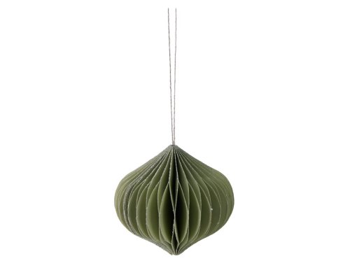 Ozdoby papier 80mm Vianočné na stromček cibuľa mix, zelená, biela so strieborným glitrom