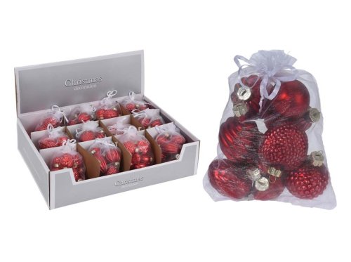Sklenené vianočné ozdoby 10 ks, 50 mm, v červenom mixe.