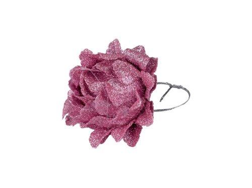 Ozdoby textil 6ks 40mm Vianočné na stromček kvet, ružová s glitrom - VÝPREDAJ