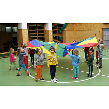 Psychomotorický padák pre deti je výbornou cvičebnou, hernou a didaktickou pomôckou. Využíva sa u menších detí na rozlišovanie farieb, na priestorovú predstavu kruhu, na vizuálny rozdiel výšky a hĺbky. U väčších detí poslúži na rýchlu reakciu na dôraz v hudbe alebo pokyn vedúceho. Je vhodný na rozvíjanie obratnosti a obratnosti pri pohybe okolo neho, pod ním alebo po jeho ploche. Používa sa na precvičovanie zmyslu pre súhru pri pohybe lopty na padáku alebo spoločnej lokomocii. Pomáha pestovať orientáciu v priestore pri podchádzaní alebo vrátení sa na svoje miesta. Padák je zložený z 12 dielov (3 žlté, 3 červené, 3 modré a 3 zelené). Na spojoch jednotlivých dielov sú pútka na držanie. Priemer kruhu vr. pútok je približne 3,8 m. Súčasťou výrobku je praktické vrecko na padák. Padák je vyrobený z veľmi ľahkej umelej látky ľahko udržiavateľné.