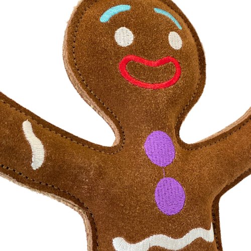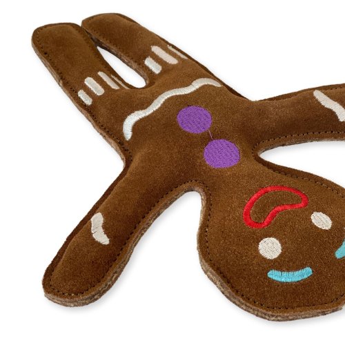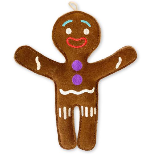 Pán Perníček je ekologická hračka vyrobená iba z prírodných materiálov, bez použitia akejkoľvek zlúčeniny, ktorá by sa pri žuvaní uvoľňovala a mohla psovi nejako uškodiť. Pravá brúsená koža je pre psíkov veľmi voňavá a lákavá. Verte, že sa Váš parťák okamžite zamiluje.... Hračka je vyrobená z pravej brúsenej byvolej kože podšitej jutovou látkou, vyplnená prírodnými kokosovými vláknami a nevydáva žiadny zvuk.