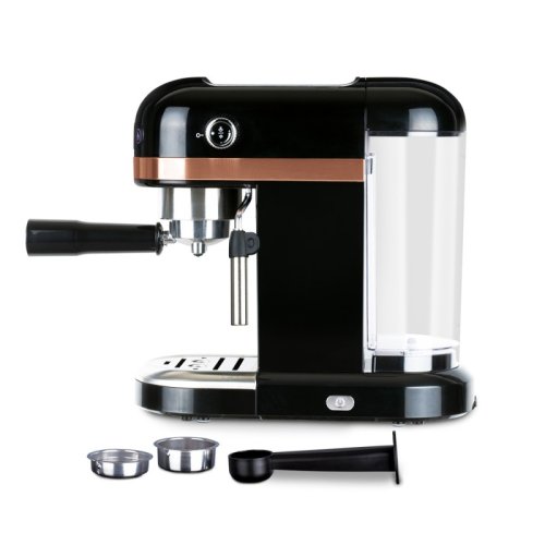 - materiál: nerezová oceľ / plast - príkon: 1350 W - napätie: 220-240V 50-60 Hz - objem zásobníka na vodu: 1.4L - farba: čierna / zlatoružová - digitálny LED displej - sitka pre 1 a 2 šálky - lyžice s vtláčadlom- …