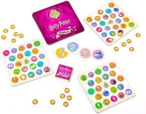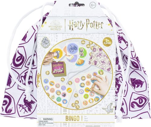 Cieľ hry: Vaším cieľom je zbierať kúzelné predmety a postavy, aby ste ako prví zaplnili svoju bingo kartu a vyhrali! Hra je určená pre 2-6 hráčov a poskytne hodiny zábavy fanúšikom sveta čiar a kúziel, ktorí sa zakaždým radi ponoria do sveta Harryho Pottera. Kúzelný dizajn: Hracie dosky a karty obsahujú očarujúce ilustrácie kotlíkov, mandragor, maskotov koľají v Rokforte, symbolov Darov smrti a mnohých ďalších magických prvkov. Zbierajte tieto kúzelné predmety a postavy, aby ste ako prví zaplnili svoju bingo kartu a zvíťazili!