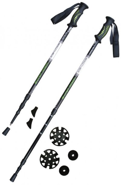 Teleskopické palice 3-dielne AL + 40% grafit, odľahčené, antishock, 72 - 145 cm. 1 pár na karte s príslušenstvom - vymeniteľné krúžky a gumové koncovky. Hmotnosť jednej palice je iba 295 gramov. Balenie 1 pár na karte v priehľadnej fólii.