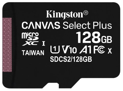 Pamäťová karta Kingston Canvas Select Plus A1 typu micro SDXC poskytuje kapacitu 128 GB . Pamäťová karta je ideálnym riešením pre rozšírenie kapacity úložiska v chytrých zariadeniach, ako sú mobilné telefóny a tablety. Vďaka rýchlosti čítania až 100 MB/s je vhodná aj pre fotoaparáty a prenosné vidokamery. Zvýšená rýchlosť čítania dát umožňuje vytvárať videozáznamy vo Full HD rozlíšení.