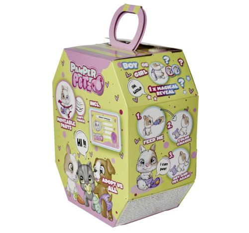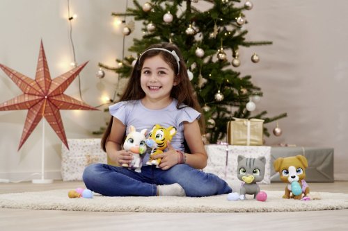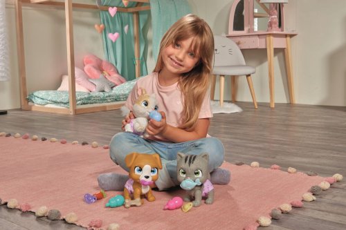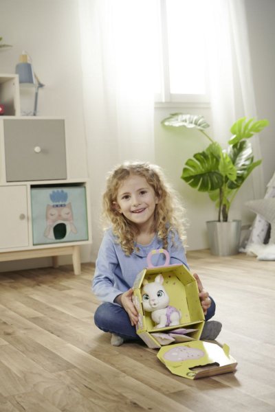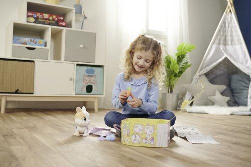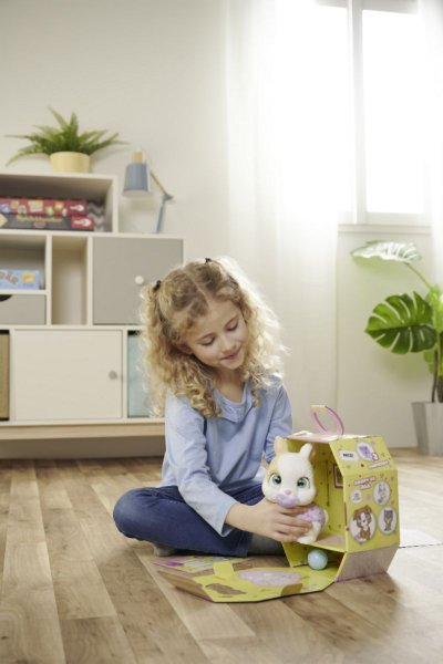 Roztomilé bábätko zajačika s picou a cikacou funkciou, plienka s funkciou zmeny sfarbenia po namočení, magická labka (po navlhčení sa vyfarbí a ukáže pohlavie zajačika), adopčný list a tri prekvapenia. Veľkosť 15 cm.