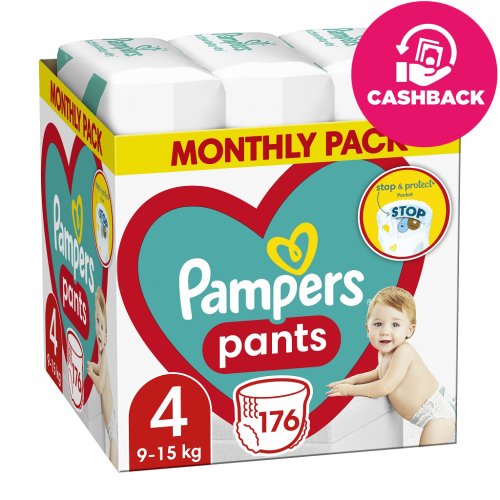 Veľkosť 4 176 kusov 9 - 15kg Poskytujú trojnásobnú ochranu so systémom Stop & Protect 2× širšie manžetky, ktoré pomáhajú predchádzať pretečeniu po stranách Vrecko, ktoré pomáha predchádzať pretečeniu vzadu Komfortná ochrana 360° Vrecko Stop & Protect pomáha zabrániť pretečeniu vzadu Ochrana 360° sa absorpčným jadrom, ktoré okamžite absorbuje tekutinu Jednoduchá výmena plienkových nohavičiek Sú schválené dermatológmi z organizácie Skin Health Alliance ako bezpečné pri kontakte s detskou pokožkou Používajte spoločne s detskými čistiacimi obrúskami Pampers