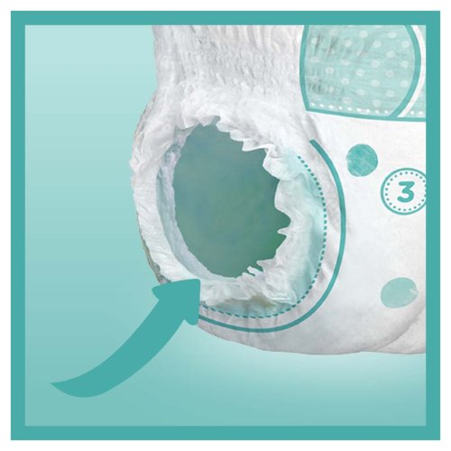 Sú pohodlné v každom smere vďaka (1) pružnému pásu po celom obvode, ktorý sa prispôsobuje brušku vášho dieťatka, (2) super absorpčnému jadru, ktoré rýchlo odvádza vlhkosť a (3) pevnejším manžetkám okolo nožičiek, ktoré pomáhajú predchádzať pretekaniu.