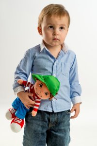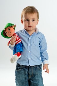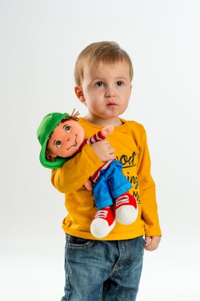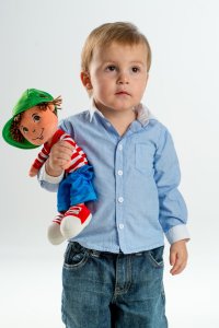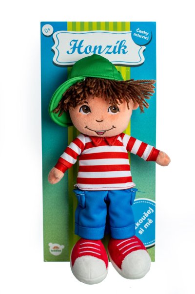 Handrový chlapec Honzík po stlačení bruška hovorí: "Ahoj, ja som Honzík a naučím ťa básničky" a hovorí básničky: "Gúľala sa zemiaka ..., Čistím zúbky ..., Mám dve ušká na počúvanie ..." Rozmer: 30 cm Vhodný pre deti.