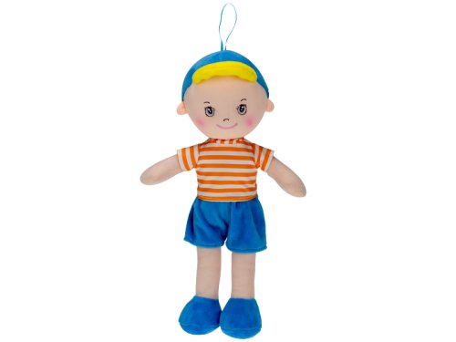 Panáčik Piotruś 'handrová 32 cm na batérie poľsky hovoriace - mix farieb (modrá, fialová, oranžová)