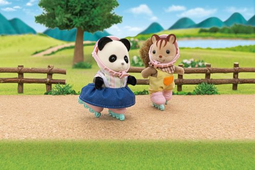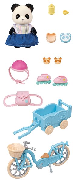 Sada Panda a cyklo-korčuliarsky set- obsahuje figúrku a doplnky pre hranie vonku, s panďou dievčaťom Rosalinou v exkluzívnom oblečení, na bicykli a kolieskových korčuliach. Pripojte koleso k vozíku, aby ste mohli vziať dieťa na prechádzku alebo prepraviť batožinu. Nasaďte figúrke helmu pre bezpečnú jazdu na bicykli či kolieskových korčuliach. Uložte do batôžku fľašu, nasaďte figúrke na chrbát a vyrazte na výlet. Táto sada obsahuje figúrku a doplnky a je možné sa s ňou hrať samostatne. Skombinujte s Rodinou Pand (predáva sa samostatne) pre viac zábavy so zvyškom rodiny. Stimuluje nápadité hranie rolí pre deti. Vek: 3+