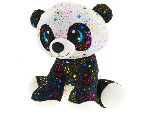 Krásna panda o veľkosti 35cm v sediacej polohe ohromí deti na prvý pohľad svojim prevedením. Panda je obľúbeným zvieratkom všetkých detí. Táto plyšová panda je navyše ozdobená krásnymi farebnými hviezdičkami a trblietkami, ktoré si deti na prvý pohľad zamilujú.