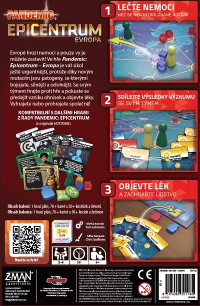 V hre Pandemic: Epicentrum - Európa sa stanete členmi špeciálneho tímu, ktorý bojuje proti chorobám. Použite svoje jedinečné schopnosti, spolupracujte, zastavte šírenie chorôb naprieč Európou a pri tom pracujte na vývoji liekov. So svojim tímom hrajte proti hre a pokúste sa predísť vzniku ohnísk. Vyhráte alebo prehráte spoločne!