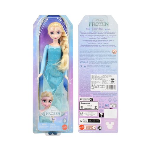 Disney Ledové království – základní panenka Elsa – jde o pohyblivou módní panenku standardní velikosti, přibližně 28–30 cm na výšku.Panenka je oblečená v jejím ikonickém modrém/ledovém kostýmu z filmu Ledové království. Má dlouhé blond vlasy upravené do elegantního bočního copu, stejně jako ve filmu.
