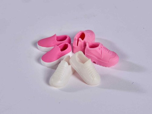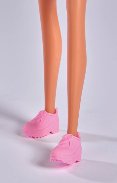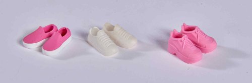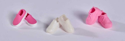 Bábika Steffi v módnych šatách s džínsovou bundou, ľadvinkou a tromi pármi tenisiek.