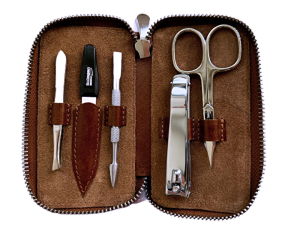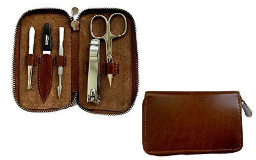 Pánska manikúrová sada z pravej kože v hnedej farbe. Kvalitné nástroje z Nemecka majú dlhodobú výdrž a sú veľmi odolné.