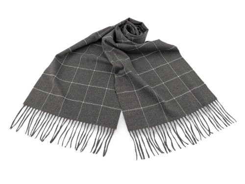 Pánsky šál so strapcami káro 30x175 cm - šedá