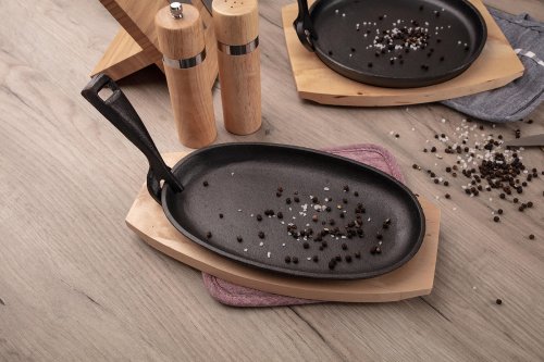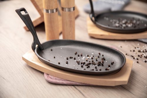 Panvica 23 x 14 cm GRADA, liatina + drevená doštička.
