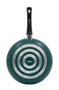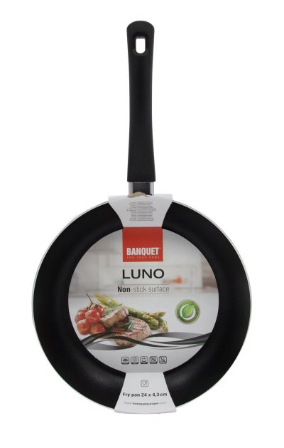 Hliníková presovaná panvica LUNO s nepriľnavým 2vrstvovým povrchom. Vnútorný nepriľnavý povrch čierna farba, vonkajší povrch tyrkysová matná farba,. S čiernou bakelitovou rukoväťou. Panvica je vhodná na všetky typy varných dosiek mimo indukcie.
