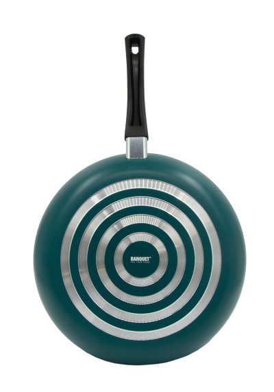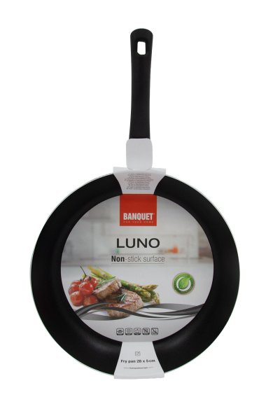 Hliníková presovaná panvica LUNO s nepriľnavým 2vrstvovým povrchom. Vnútorný nepriľnavý povrch čierna farba, vonkajší povrch tyrkysová matná farba,. S čiernou bakelitovou rukoväťou. Panvica je vhodná na všetky typy varných dosiek mimo indukcie.