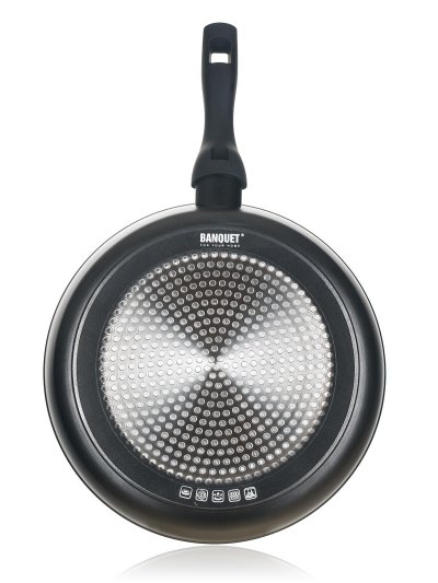 Hliníková kovaná panvica GRAZIA so značkovým nepriľnavým 3vrstvovým povrchom ILAG PREMIUM. Vonkajší 2-vrstvový žiaruvzdorný nástrek. Indukčné dno s piktogramovou laserovou potlačou.