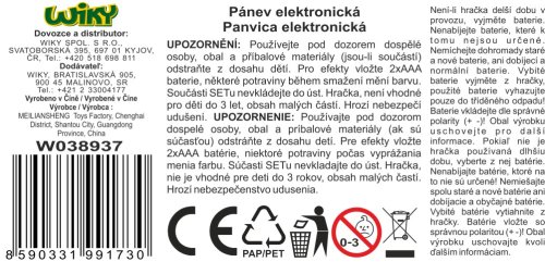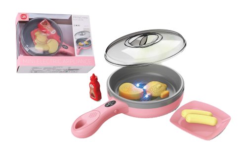 Panvica elektronická. Veľkosť 27,5x16x7 cm. Počas vyprážania potraviny menia farbu. Obsahuje panvicu, pokrievku, tanierik, kečup, 4ks potravín. Svetelné a zvukové efekty. 2xAAA batérie nie sú súčasťou.