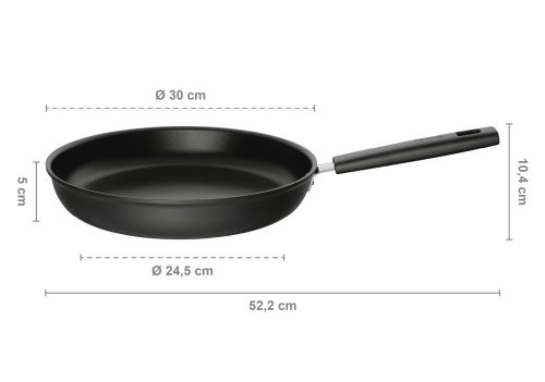 Panvica z hliníka na náročné použitie. Má najodolnejší povrch Hardtec Superior+ s vynikajúcou nepriľnavosťou a veľkou odolnosťou. Moderný čierny dizajn je doplnený držadlom z bakelitu, ktoré zostáva pri varení chladné a dobre sa drží. Výška: 105 mm, dĺžka: 525 mm, šírka: 320 mm, hmotnosť: 1750 g.
